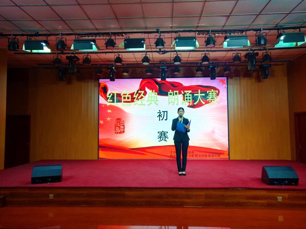 比赛以红色经典作品为素材,紧紧围绕“不忘初心、牢记使命”这一主题,参赛选手结合自己的所见、所闻、所感,通过一封封红色家书、一首首红色诗词,娓娓道来自己心中的“初心”与“使命”,用声音诠释他们对不忘初心的理解,用行动展现新时代青年牢记使命的信念,真挚地表达了对党的热爱以及勇担崇高使命的坚定信念。在全院学生范围内唱响了“爱党爱国”的主旋律。最终,经过激烈比拼,来自十个系部的二十名选手晋级决赛。