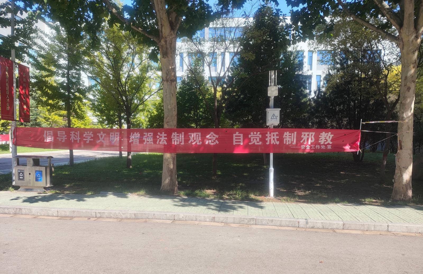 一方面,充分利用校园宣传栏、宣传横幅、LED电子屏、校园网、广播站、新媒体平台等宣传阵地,进一步强化反邪教警示教育宣传。以图书馆、教学楼、食堂等人流量密集的校内公共场所为重点,通过LED显示屏滚动播放反邪教标语,扩大了宣传覆盖面和影响力。另一方面,通过召开学生班会,认真组织开展“开学第一课”主题班会,播放反邪教警示教育宣传片,并结合日常谈心谈话、走访寝室等方式及时了解学生思想动态情况。同时,把反邪教警示内容融入党团活动、社团活动以及思想政治理论课中,常态化开展反邪教宣传教育,共同守护风清气正、安全稳定的校园环境。
