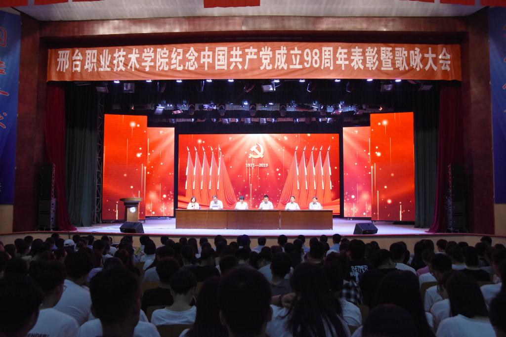 为庆祝中国共产党成立98周年和中华人民共和国成立70周年,讴歌改革开放以来在党的领导下所取得的辉煌成就,推进“不忘初心,牢记使命”主题教育深入开展,6月28日下午,学院在红星礼堂隆重举行纪念中国共产党成立98周年表彰暨歌咏大会。学院领导、全体教职员工及学生代表近2000人参加了大会。会议由院长马东霄主持。