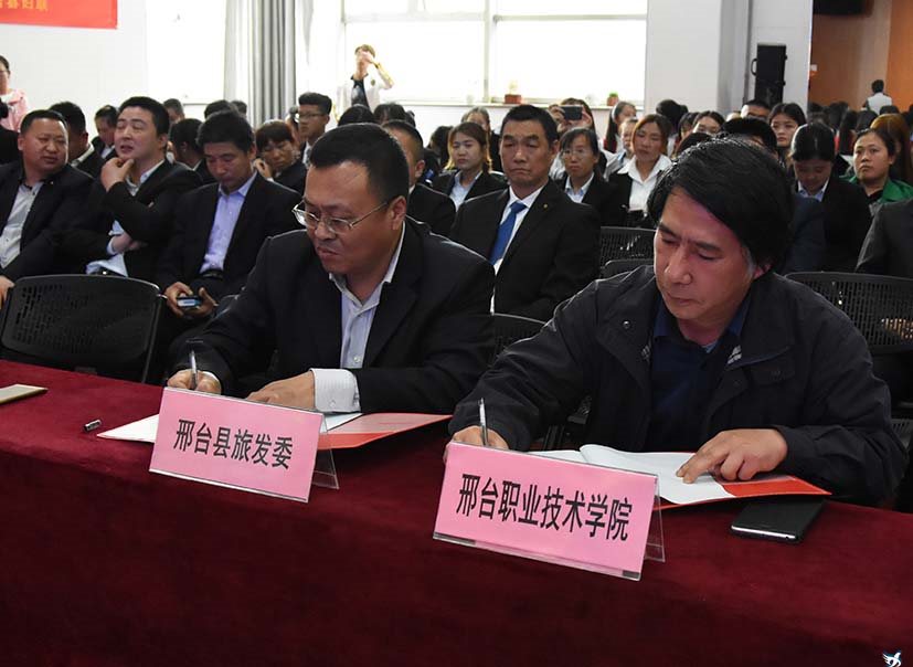 为全面贯彻落实京津冀协同发展国家战略,围绕邢台县域内全域旅游全产业链,将地方资源优势与高校人才、科技优势相结合,不断扩大学院服务地方经济建设的深度和广度,4月24日,学院经济管理系与邢台县旅游发展委员会就双方合作建立“县域科技创新服务中心”在学院大学生活动中心举行了签约仪式。