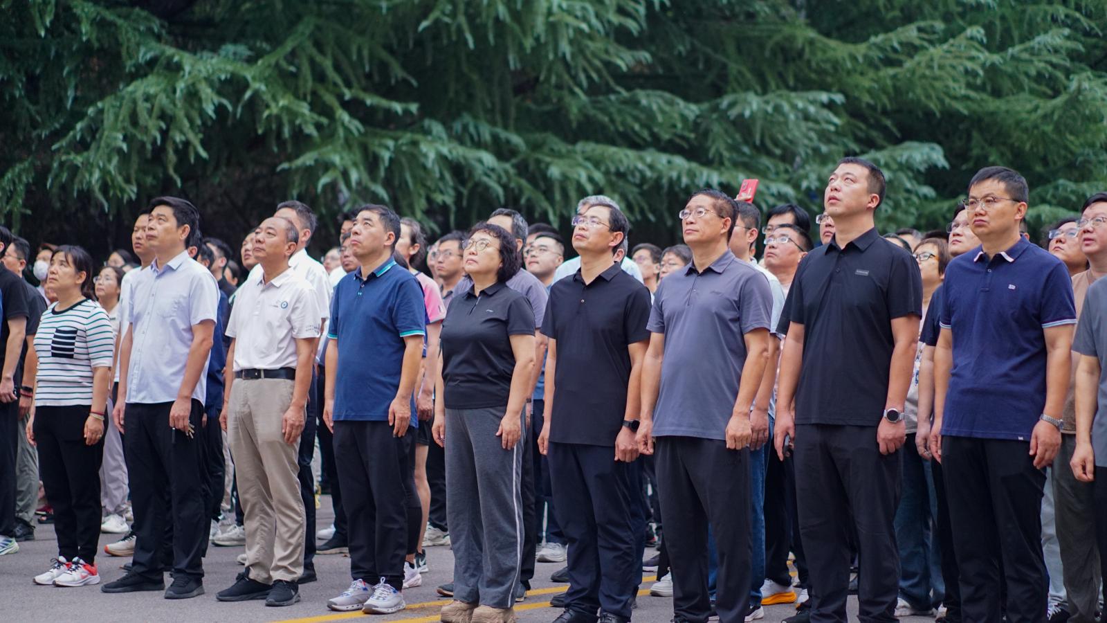 烽火记忆照前路,秋风为序启新程。今年是中国人民抗日战争暨世界反法西斯战争胜利80周年。早上6时30分,在全校师生的注视下,国旗护卫队员迈着整齐划一的步伐,护卫着五星红旗昂首挺胸地走向升旗台。当雄壮的国歌响起,鲜红的五星红旗像一团炽热的火焰,沐浴晨曦、冉冉升起,全校师生面向国旗庄严肃立,行注目礼。这一刻,我们缅怀历史、致敬英雄;这一刻,我们准备就绪,以崭新面貌开启新的一程。
