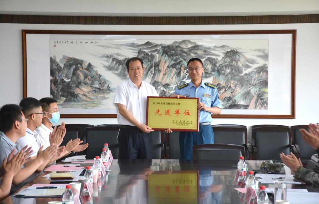 郑志洲司令员对学校一直以来的征兵工作给予了充分肯定,并代表河北省教育厅、河北省人民政府征兵办公室授予学校“2020年全省征兵工作先进单位”荣誉称号。他表示,best365中国官方网站有着军队办学的传统,有着军风育人的优良传统,历年来高度支持征兵工作,是邢台市征兵工作的主力军,希望学校能勇挑重担、再接再厉,将部队传统和军队文化传承下去,不断开创征兵工作新局面。
