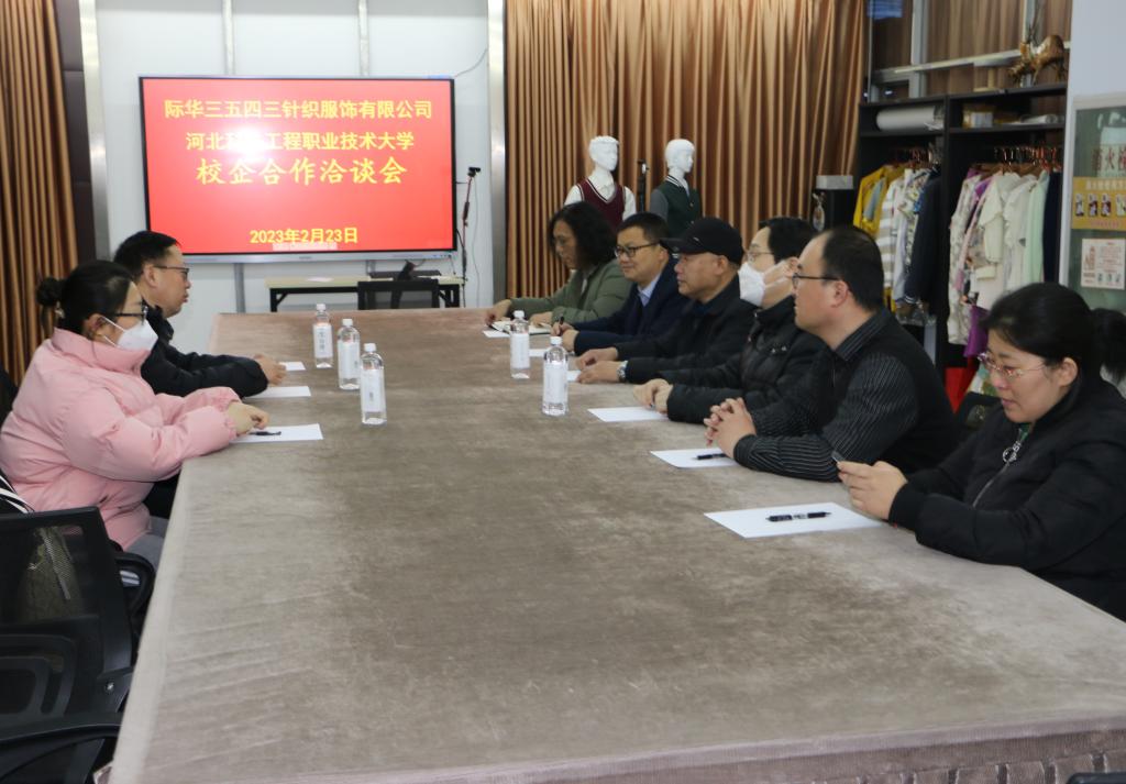 2月23日上午,际华三五四三针织服饰有限公司总经理李新军和人力资源部经理刘晶晶一行到best365洽谈合作,服装工程系主任范树林、副书记辛东升及其他骨干教师接待来宾并参加来访活动。