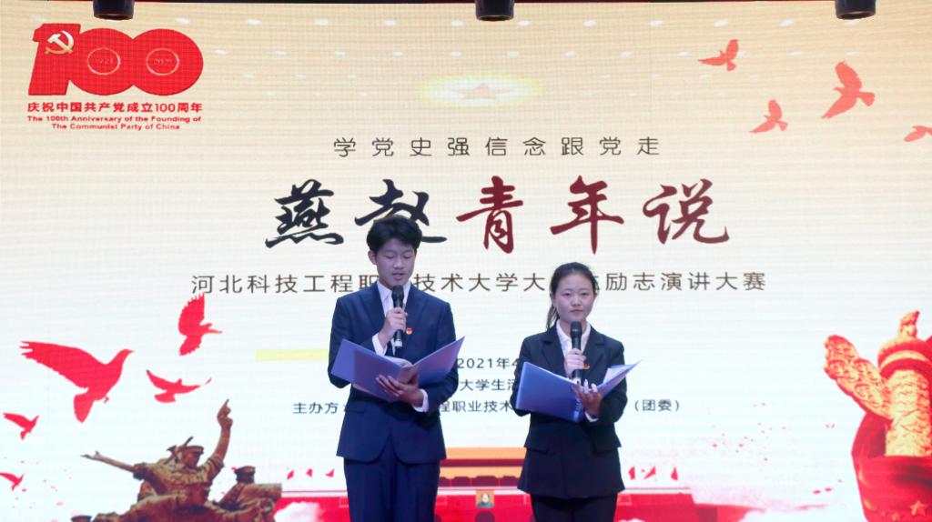 今年是中国共产党成立100周年。为深入学习贯彻习近平新时代中国特色社会主义思想,全面贯彻党的十九届五中全会精神,引导广大青年学生积极学习党史,厚植知史爱党、知史爱国的理想信念,让红色基因、革命薪火代代传承,4月27日晚,由学生工作处(团委)组织的 “学党史 强信念 跟党走”第三届“燕赵青年说”大学生励志演讲比赛决赛在大学生活动中心举行。党群工作部副部长李相臣、团委书记卢磊、学生处曾姝三位老师担任评委。各系60余名学生代表到场观看,1000余名学生通过微博直播观看了本场比赛。
