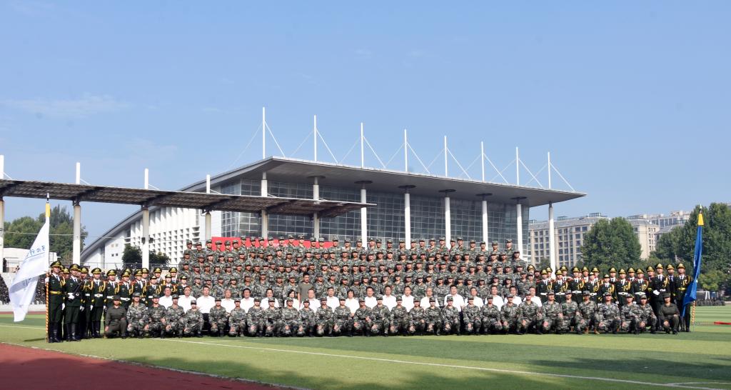 军训会落幕,青春不止步。学校领导与全体军训教官合影留念,2024级新生的科工大之旅正要启航。