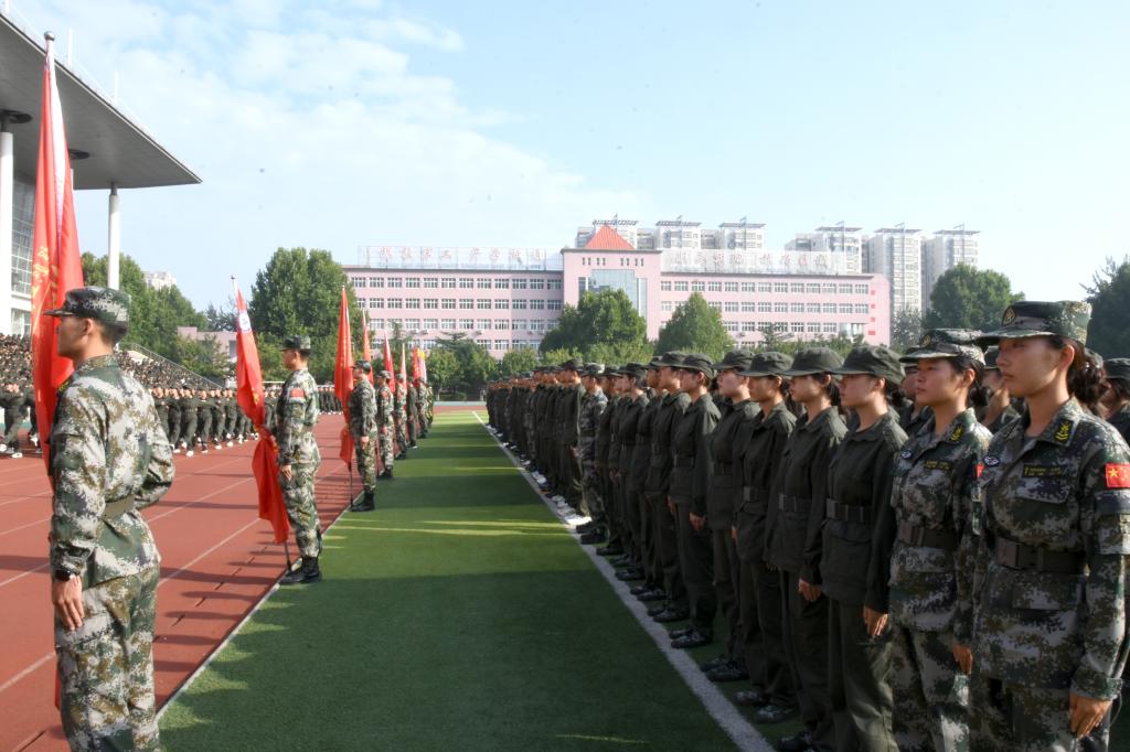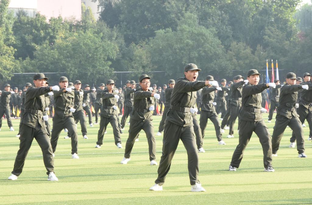 艳阳照沙场,军训铸军魂。气势磅礴的军事技能和方队分列式汇报表演正式开始。