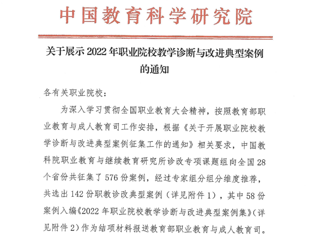 日前,教育部中国教科院职业与继续教育研究所发布《2022年职业院校教学诊断与改进典型案例名单》与《〈2022年职业院校教学诊断与改进典型案例集〉入编名单》。best365共有3项诊改案例入选,1项诊改案例入编,荣列河北省职业院校入选案例总数榜首。