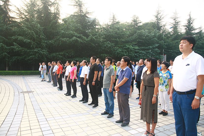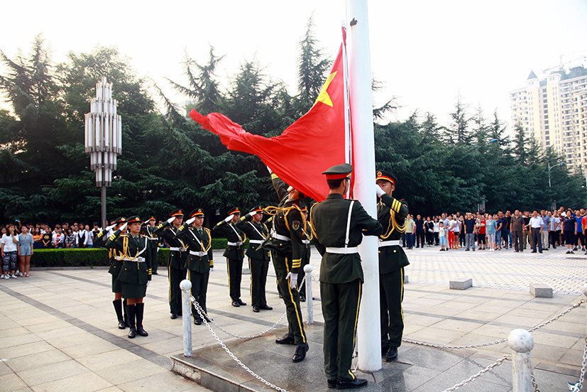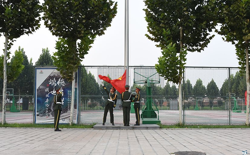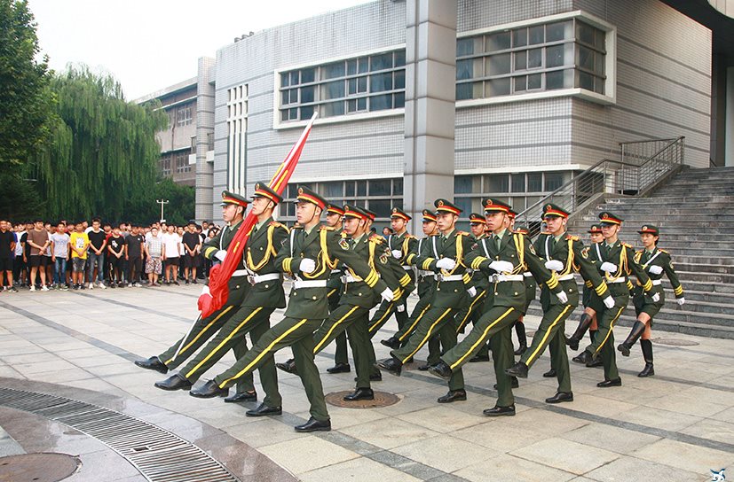 8月27日,学院新学年的首次升旗仪式在主楼广场和新校区广场前举行。