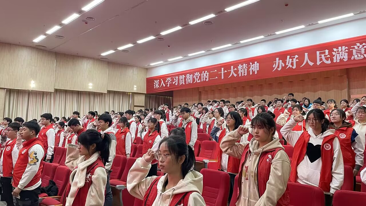 上午9时大会开始。首先,信都区团委书记贾玉鑫致辞,表达了对青年志愿者的祝福与期望。学校团委书记卢磊作了动员讲话,他号召青年学生要走出课堂,走进社区,走进社会基层,了解社会实际、服务人民群众、增强时代责任、提高社会化能力,让青春在志愿服务中绽放绚丽色彩。艺术与传媒系学生司伟涛代表志愿者发言,表达了青年志愿者的心声。最后,全体志愿者庄严宣誓,铮铮誓言点亮了“奉献、友爱、互助、进步”的志愿服务精神,彰显着科工大青年朝气蓬勃的精神面貌。