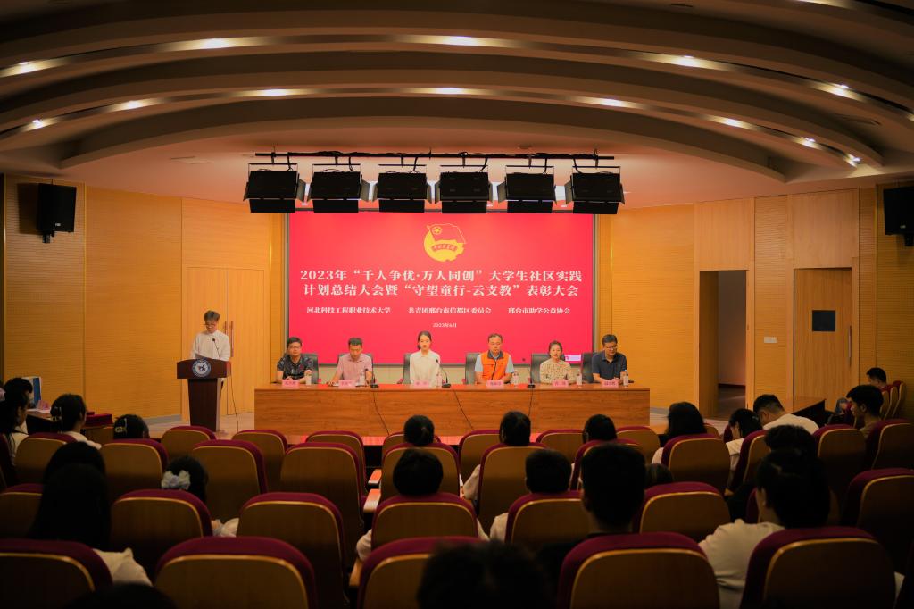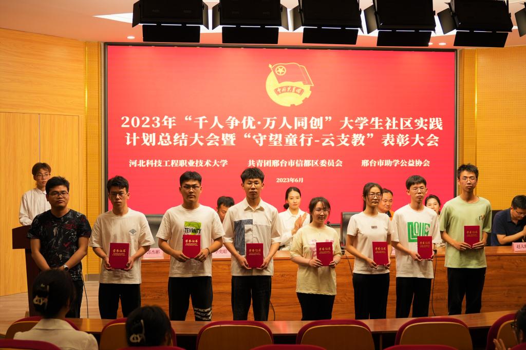 为深入学习贯彻习近平新时代中国特色社会主义思想,引领青年在志愿服务岗位上建功立业,近日,学校2023年“千人争优、万人同创”大学生社区实践计划总结大会暨“守望童行-云支教”表彰大会在图书馆学术报告厅隆重举行。共青团信都区委副书记成铭、共青团信都区委挂职副书记、邢台市助学公益协会会长韩林璋以及“云支教”志愿服务项目志愿者、学校青E行志愿服务队共同参加此次表彰大会。