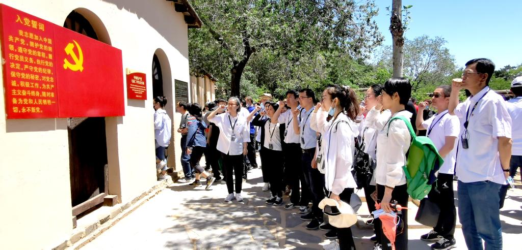 全体党员在中共中央旧址前重温了入党誓词,不忘入党初心,追寻革命足迹,赓续红色血脉,发扬新时代的“赶考”精神。