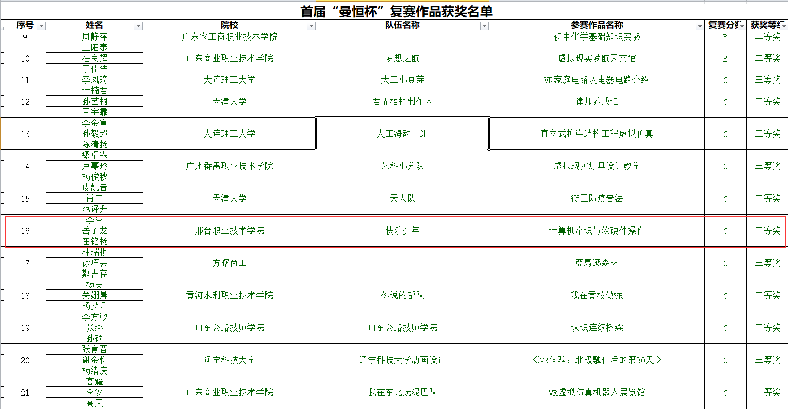 2020年全国首届“曼恒杯”线上虚拟现实(VR)大赛于5月8日正式开赛。经过2个月的激烈角逐,我院代表队的VR作品“计算机常识与软硬件操作”,在全国所有作品(包含本科与高职)中排名第16,获得全国团体三等奖。