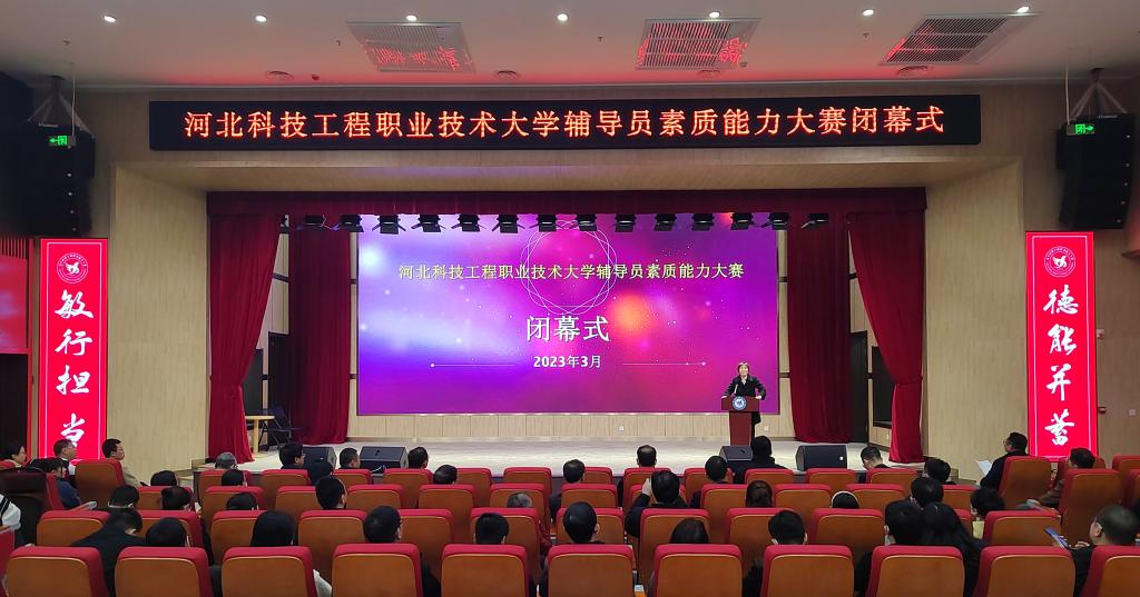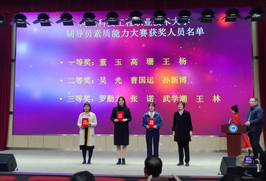 本次大赛按照省赛规则,共设置基础知识、班情熟知、主题班会、案例研讨和谈心谈话五个环节,全体辅导员均参加了比赛,经过激烈角逐,最终,共评选出单项奖18名,综合素质能力奖10名。闭幕式上,温斌宣读了《关于表彰2022年学校辅导员素质能力大赛获奖人员的决定》,校领导刘彩琴和张双会分别为获得校赛综合成绩一、二、三等奖的辅导员颁发获奖证书。随后获得主题班会、案例研讨和谈心谈话三个环节一等奖的老师还进行了能力展示。
