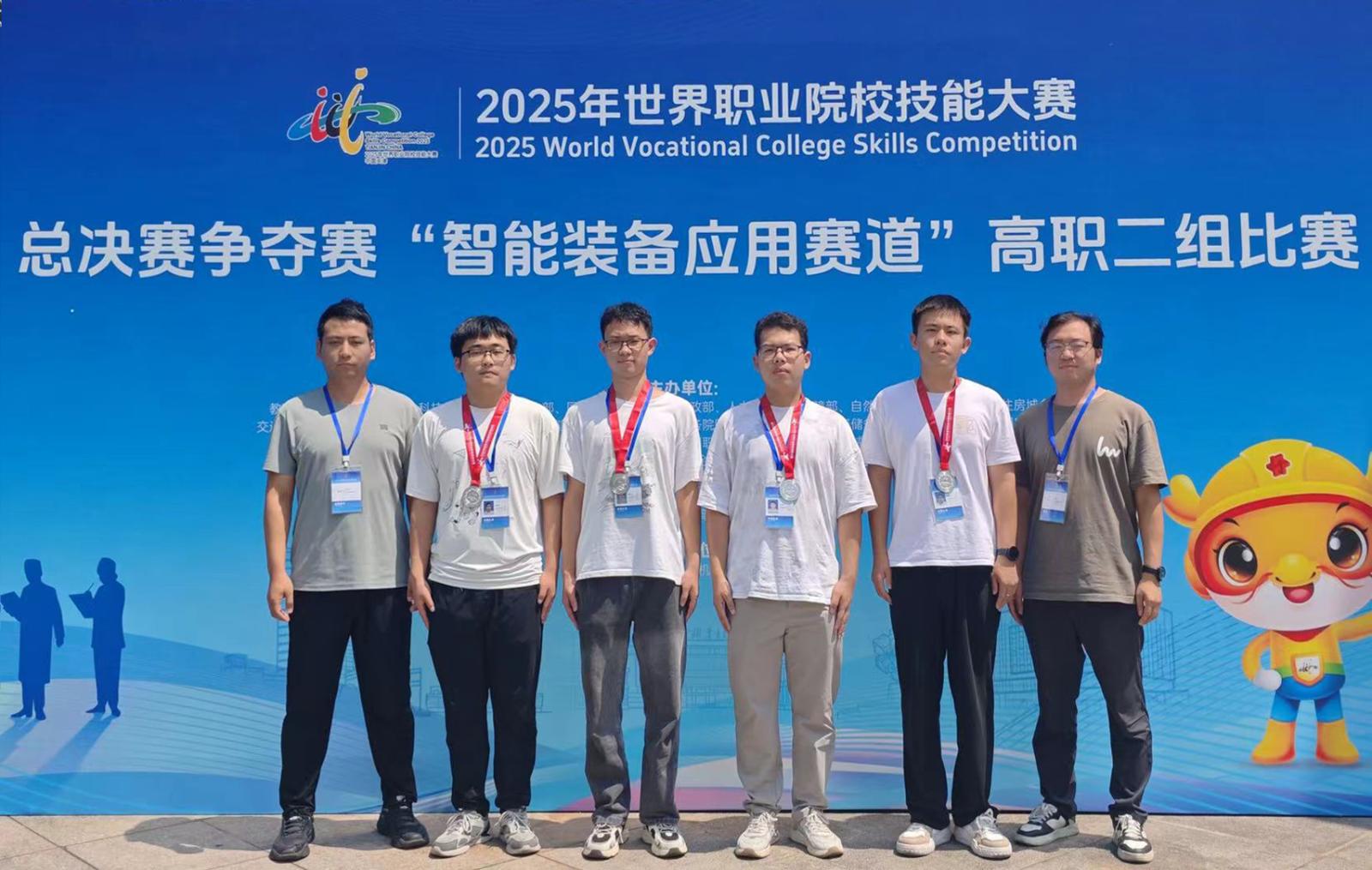 8月23日至24日,2025年世界职业院校技能大赛总决赛争夺赛“智能装备应用赛道”在浙江机电职业技术大学、杭州职业技术学院、嘉兴职业技术学院三校联合举办,来自全国198支参赛队齐聚一堂,展开激烈角逐。best365机电工程系学生杨晨宇、段易坤、程志远、赵家磊(指导老师:赵勇、司振超)组成的参赛队凭借卓越的专业技能和出色的团队协作,发挥出色,最终斩获大赛银奖。