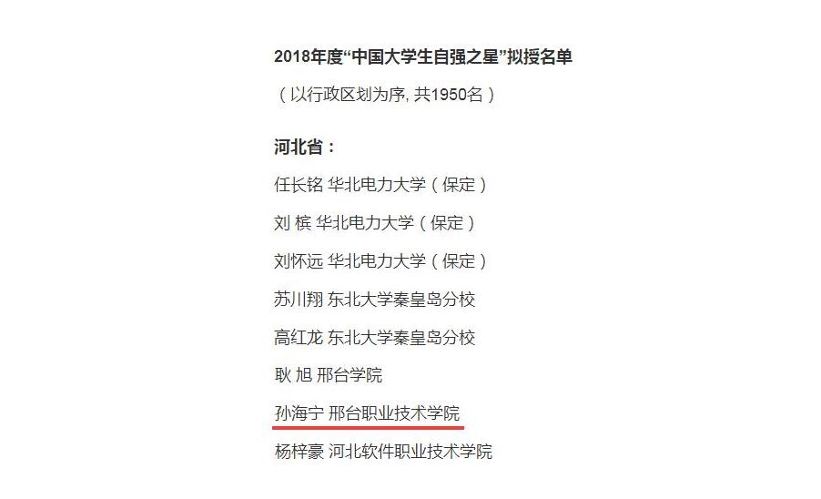 近日,由共青团中央、全国学联共同组织开展的2018年度“中国大学生自强之星”奖学金评选结果揭晓。我院建筑工程系孙海宁同学荣获2018年度“中国大学生自强之星”称号。