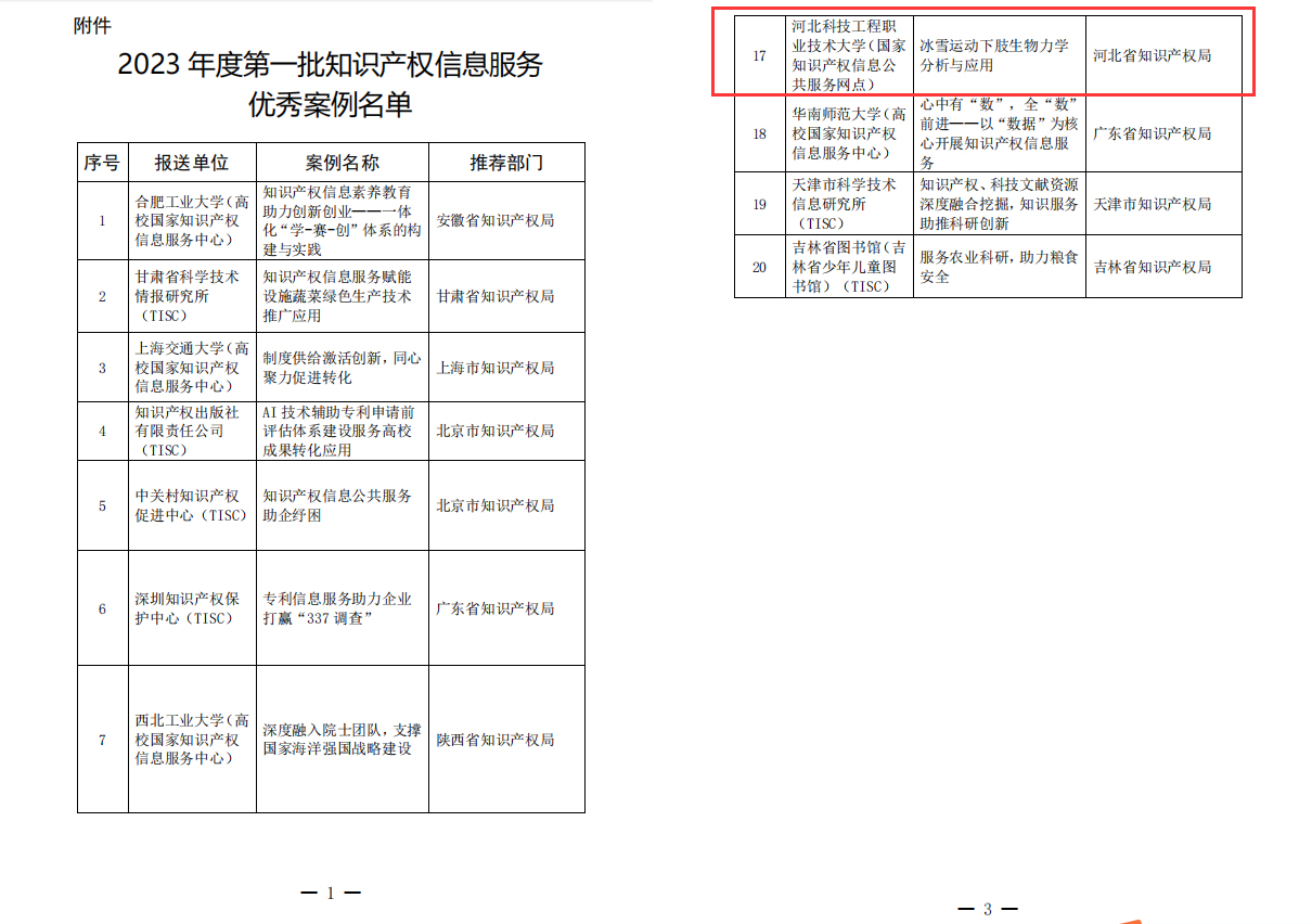 近日,国家知识产权局办公室发布了2023年度第一批知识产权信息服务优秀案例,best365“冰雪运动下肢生物力学分析与应用”案例成功入选。