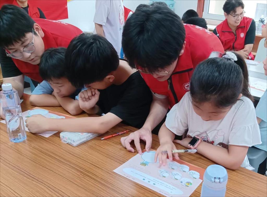 7月17日上午,青青园中葵志愿服务队同学来到邢台市信都区科苑社区孔村儿童暑期托管营开启关爱行动“七彩假期”的第一堂课,聚焦儿童“身心成长”。志愿者同学首先通过引导孩子们绘制和分享“快乐瓶”小活动,让孩子们感受快乐带来的力量,让孩子们能够更加积极的面对生活中的烦恼。接着通过“距离信号灯”小游戏,让孩子们认识到相同情境下,每个人的心理距离是不相同的,要体会自己的心理舒适度、也要尊重他人需要的心理距离。最后通过“优点大爆炸”小活动让孩子们认识到每个人都是这世界上独一无二的个体,引导孩子们找到自己的优点,激励培养孩子们的自信心。志愿者的陪伴使小朋友们收获满满,学会了如何与人交流以及在交流过程中需要注意的礼仪,学会了如何使自己保持快乐的心态,更好的面对困难。
