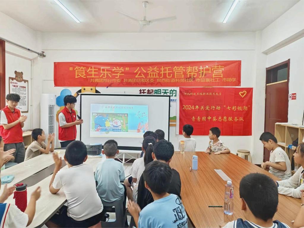 为深入学习宣传贯彻习近平新时代中国特色社会主义思想和党的二十大精神,切实加强对农村留守儿童、寄宿儿童、困境儿童等少年儿童群体的关心关爱,组织动员青年志愿者以实际行动投身中国式现代化建设,7月16日下午,学校联合共青团信都区委、邢台市助学公益协会在学校机电楼会议室举行团中央2024年“七彩假期”青青园中葵志愿服务队关爱行动启动仪式。共青团信都区委书记贾玉鑫、邢台市助学公益协会秘书长张静参加仪式并讲话,机电工程系学工科科长赵大鹏、青青园中葵服务队全体成员、市助学公益协会部分志愿者参加活动。