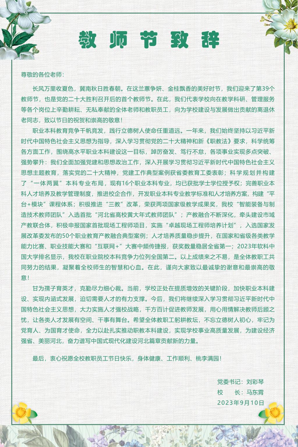 科工大2023年教师节致辞
