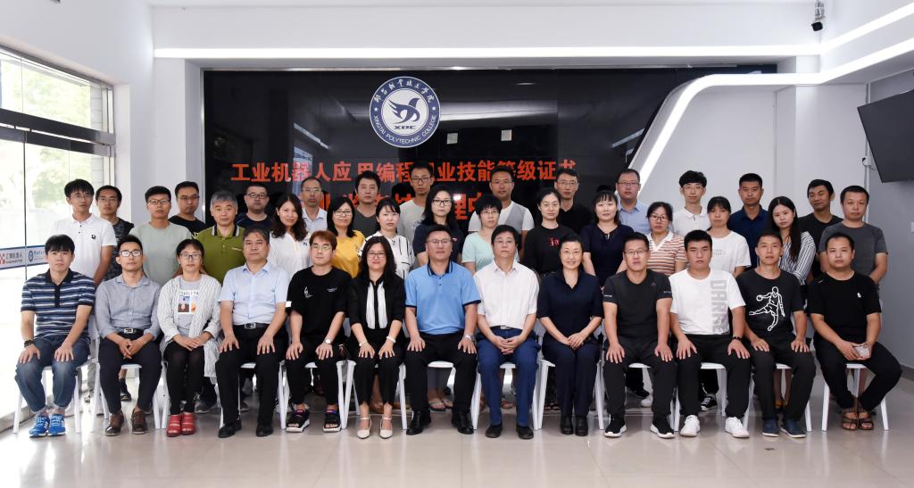 为贯彻落实河北省教育厅相关文件精神,河北省全面开展“1+X”证书制度试点院校教师培训,我院承担其中工业机器人应用编程项目培训工作,8月13日,该项目在我院正式启动。开班仪式在电气工程系工业机器人应用编程1+X证书考核基地举行。来自全省10个试点学校30名老师参加。