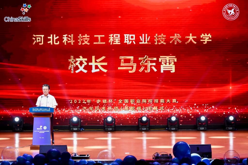马东霄校长致辞,向奋斗鏖战的同学们、时刻关注比赛的老师们表示真诚的问候,向勇于担当、不辞辛苦的专家和裁判员表示崇高的敬意,向同样辛勤付出、坚守岗位的工作人员表示诚挚的谢意,向全情投入、为比赛做出突出贡献的企业界和新闻界朋友们表示衷心的感谢,向取得优异成绩的参赛选手和指导老师表示热烈的祝贺。他希望广大青年学生弘扬“劳动光荣、技能宝贵、创造伟大”的时代风尚,传扬“技能立身,劳动强国”的大赛主题,树立远大理想,向着“能工巧匠”和“大国工匠”的更高目标迈进,更好的服务技能型社会建设,以实际行动迎接党的二十大胜利召开。