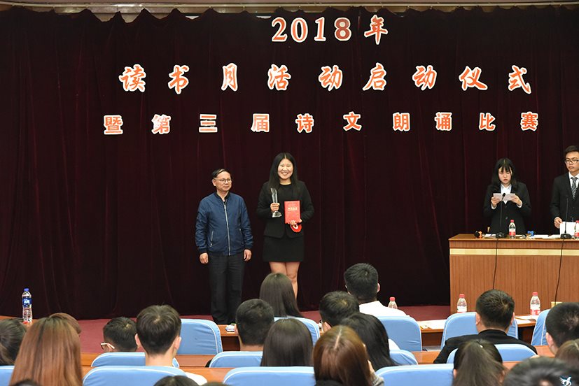 最美人间四月天,正是阅读最佳时。为迎接“世界读书日”,4月21日晚,学院读书月活动启动仪式暨“第三届诗文朗诵比赛”决赛在图书馆学术报告厅举行。学院党群工作部部长魏继华、图书馆馆长余设华、学生处副处长李磊、基础课部语文教研室主任石爱民、团委卢磊老师等出席了活动。
