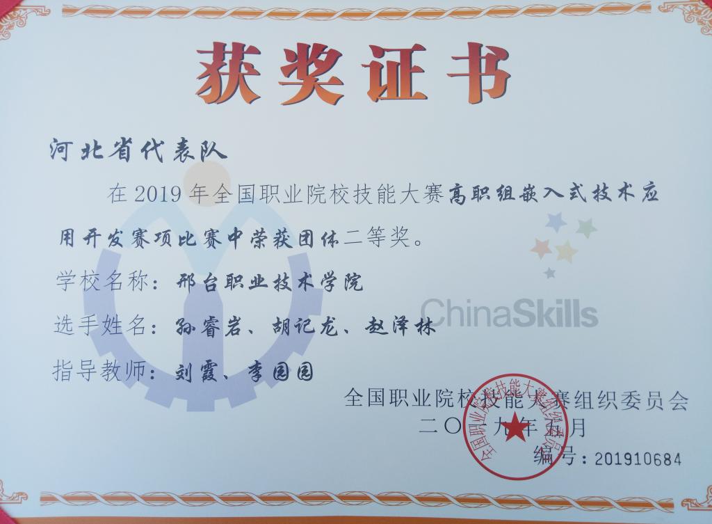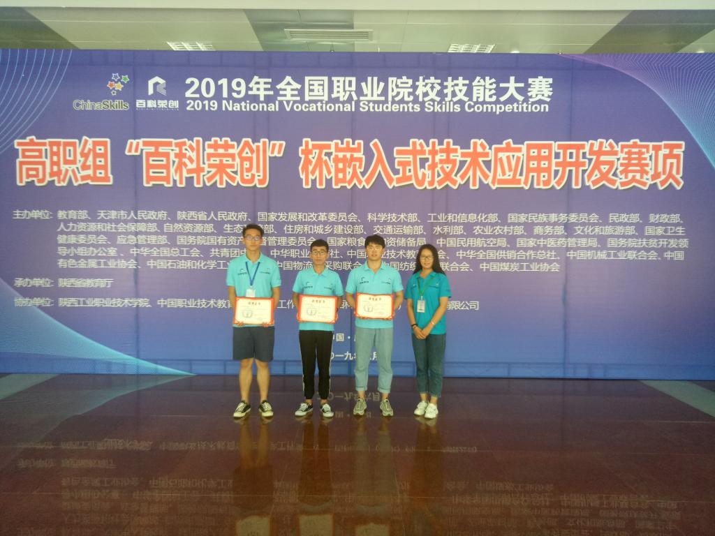 6月2日,全国职业院校技能大赛“嵌入式技术应用开发”赛项在陕西工业职业技术学院举行。经过两天的紧张角逐,由我院信息工程系褚建立主任领队,刘霞、李园园老师指导的孙睿言、胡记龙、赵泽林三名同学组成的代表队,在全国28个省、直辖市、自治区以及境外的98支代表队中脱颖而出,荣获团体二等奖。