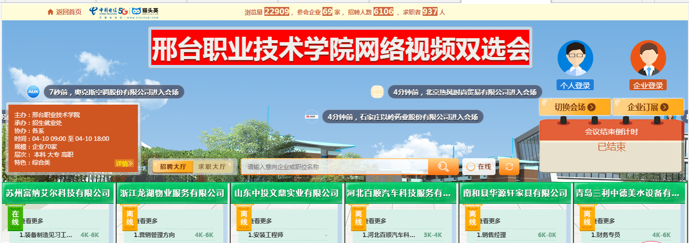本次双选会预设展位60席,最终优选69家国有企业、上市公司及中外合资企业和大型知名公司参会,提供就业岗位6106个。我院531名毕业生以及来自省内外60所兄弟院校的406名毕业生入场参会。据统计,线上浏览量达22909人次,共达成就业意向1546人次,圆满实现预定目标。