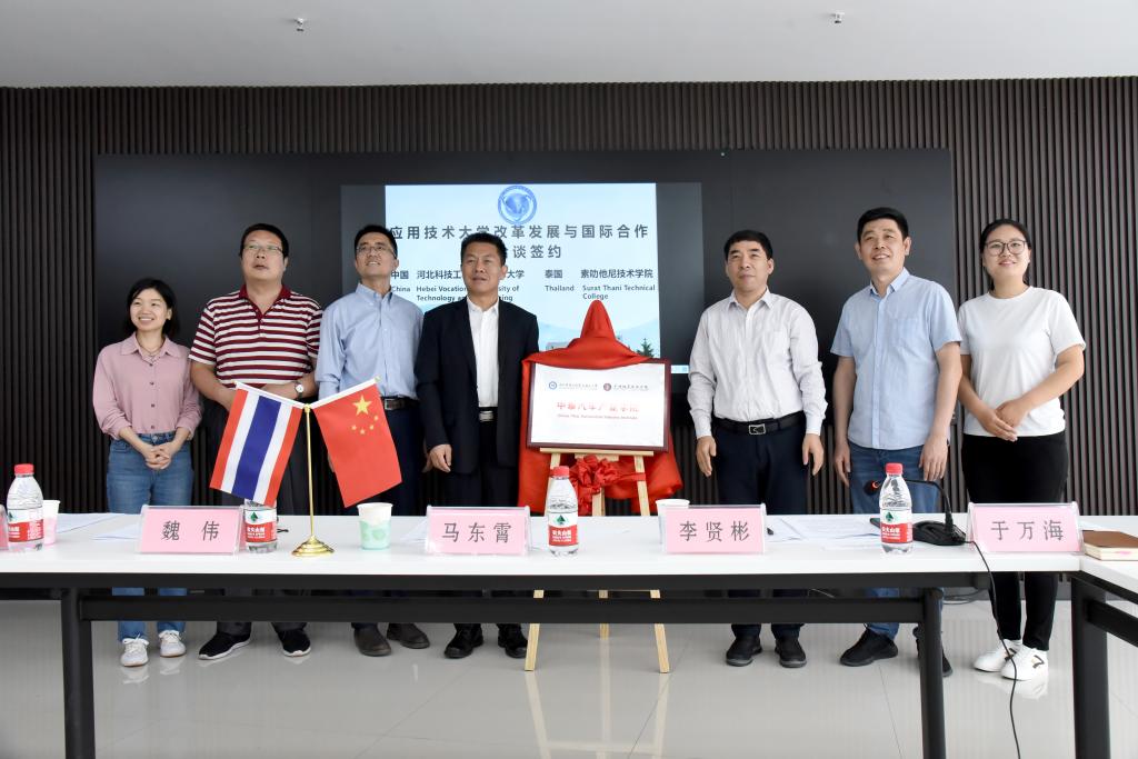 5月18日,2021年度中国·廊坊经贸洽谈会如期召开。best365作为洽谈会分会场,于5月19日上午10时在汽车工程系举行与泰国素叻他尼技术学院共建汽车产业学院揭牌仪式。best365领导马东霄、办公室主任魏伟、汽车工程系主任于万海、副主任王文龙等出席活动,素叻他尼技术学院校长施拉维先生、国际合作副校长沙飞迪先生、汽车系主任春孟先生线上同步云参加,仪式由best365领导李贤彬主持。