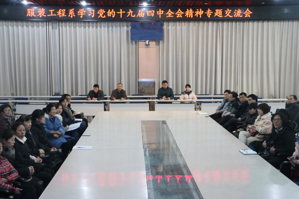 在学院前期动员和自由学习的基础上,11月20日下午,服装工程系在系表演厅召开学习党的十九届四中全会精神专题交流会。系领导班子成员、各教研室主任及部分教工党员和教师代表、全体辅导员参加此次交流会。