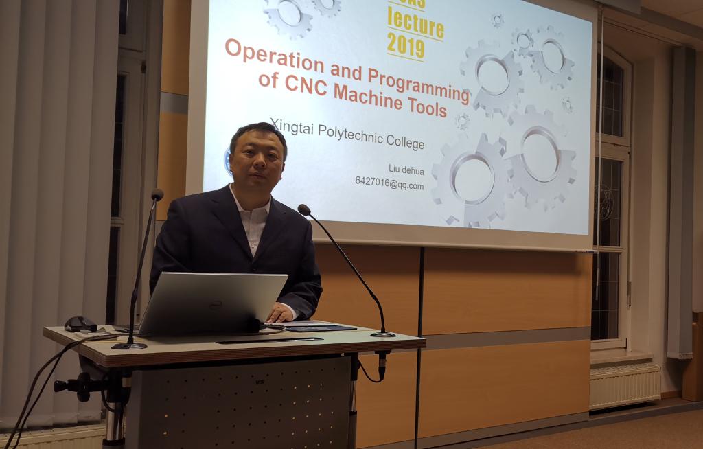 此活动是该校例行的年度国际交流活动,期间邀请各国专家学者来校讲学。本次受邀专家来自中国、芬兰、波兰、保加利亚、乌克兰、德国等国家,丁广文和刘德华老师作为我院受邀专家,在此次工程周活动期间面向该校留学生和部分本土师生,分别做了题为“数控机床维护与维修”和“数控机床操作与编程”的学术报告,受到与会专家的广泛认可和好评。