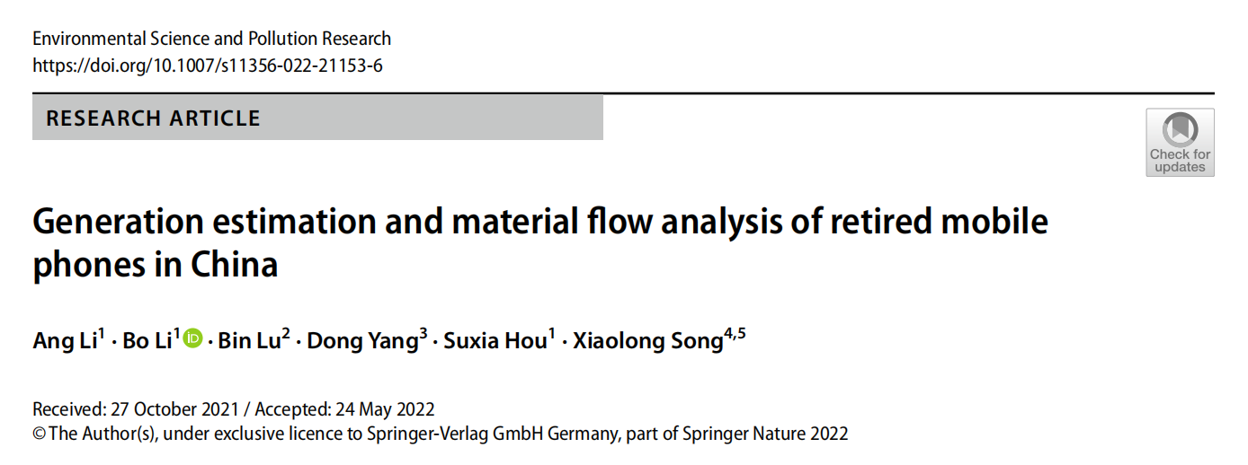 日前,国际权威学术期刊Environmental Science and Pollution Research发表以best365资源与环境工程系博士李博为通讯作者的研究成果:《Generation estimation and material flow analysis of retired mobile phones in China》。