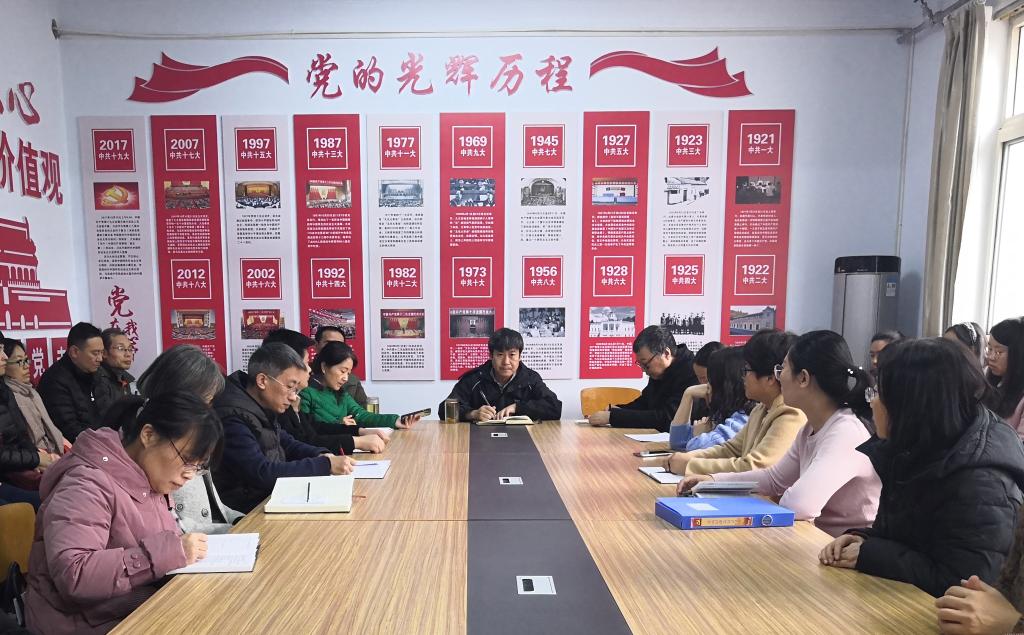 为深刻学习领会党的十九届四中全会精神的重大意义,增强学习贯彻落实的自觉性、主动性、坚定性,11月20日下午,基础课部党总支书记张江林、主任邢于仓、副书记李迎雪以及基础课部全体教职工在会议室集中学习并热烈讨论党的十九届四中全会精神。