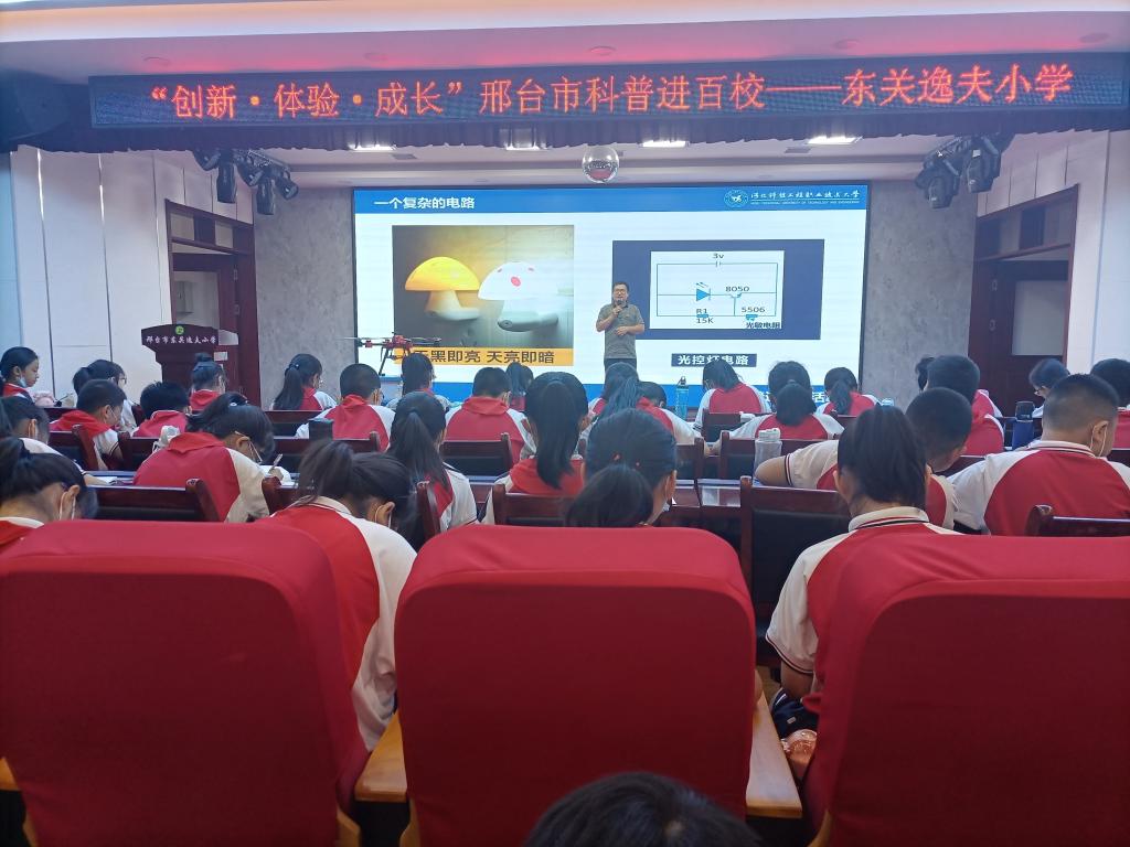 为更好地引领广大青少年提高科技创新能力与科学素质,推动学校科普活动的开展,邢台市科协、教育局和团市委联合组织在全市范围内开展市级首席科技辅导员科普进百校大型公益活动。应邢台市东关逸夫小学邀请,best365机电工程系王俊强、赵勇、张业宏三位教师于6月7日对该校四年级学生开展科普教育活动。