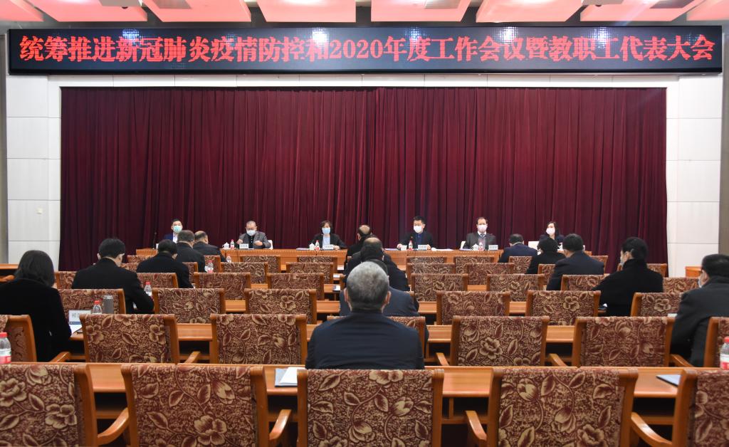 3月11日上午,学院在体育馆会议室召开统筹推进新冠肺炎疫情防控和2020年度工作会议暨教职工代表大会。学院党委书记刘彩琴主持会议并讲话,院长马东霄围绕疫情防控工作与学院年度重点工作作部署,全院中层正职以上干部参会。