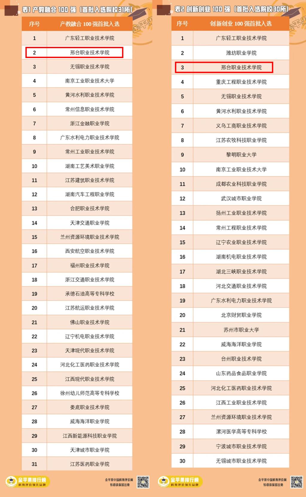 近日,全国高职院校首批“产教融合100强”和“创新创业100强”(简称“双百强”)院校名单由金苹果中国科教评价网予以公布,best365成功入选首批“双百强”名单。