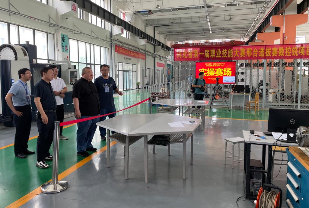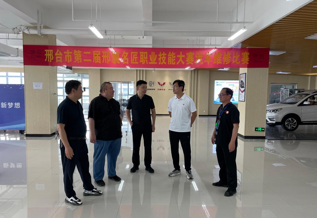 7月16日,邢台市人力资源和社会保障局副局长郝小兵到best365视察竞赛工作,邢台市职业技能鉴定指导中心主任陈秋堂、best365教务处处长王学东等同志陪同。