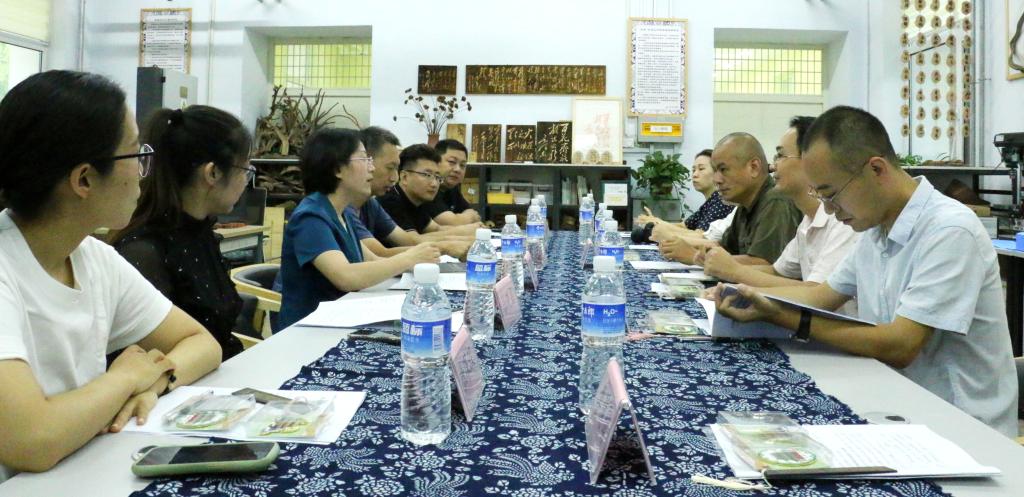 8月15日,民盟邢台市委副主委侯智赛、参政议政专委会主任王俊华等一行十人就文化创意产业发展和非遗传承保护工作来best365艺术与传媒系非遗传承创新中心调研,best365非遗传承创新中心教师郑恩峰、胡颖、郭雨微参加活动。