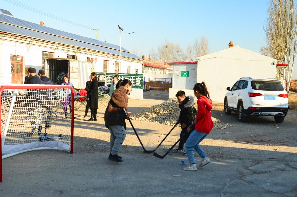 为在广大村民中营造感恩冬奥、支持冬奥、参与冬奥、奉献冬奥的浓厚氛围,工作队联合河北省“冰雪大篷车”,因地制宜在村里开展了丰富多彩的冰雪项目模拟体验活动。活动现场有陆地冰壶、桌上冰壶、陆地冰球、滑雪机、VR滑雪模拟器等系列冰雪器材装备。男女老少都可以沉浸其中,村里100多人参与活动,大家纷纷表现出对冰雪运动的喜爱。工作队把冰雪运动送到村民的家门口,让村民进一步认识了解冰雪,充分激发了广大群众积极参与冰雪运动的热情,努力营造了人人参与冰雪、助力冬奥的浓厚氛围,为村里增添了热闹欢乐的气息。