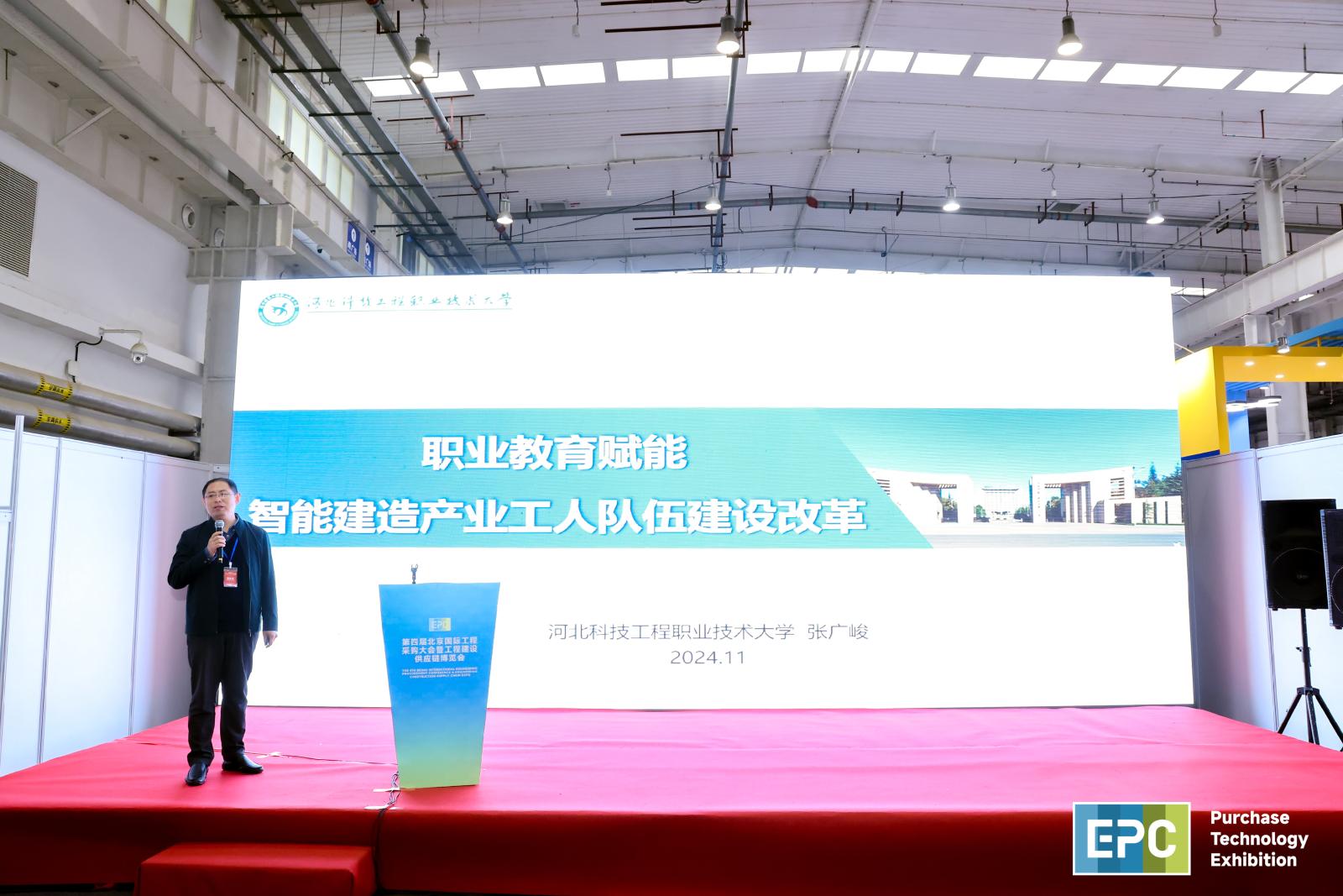 11月14日,由中国国际工程咨询协会主办的第四届中国工程采购大会暨工程建设供应链博览会在北京亦创国际会展中心召开。best365作为协办单位参与展会主题活动“房地产与智能建造高峰论坛”,建筑工程系张广峻教授应邀出席,并在论坛上作题为《职业教育赋能智能建造产业工人队伍建设改革》的主旨发言。他从产业工人队伍建设改革的战略意义、职业教育赋能产业工人技能提升、智能建造产业工人培养体系等角度阐述了职业教育的生力军作用,并介绍了best365绿色建造省级高水平专业群在服务产业转型升级和区域经济发展、校企协同育人、专业优化升级方面的经验做法。