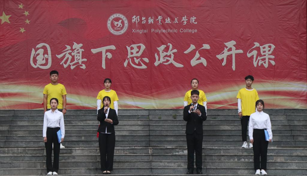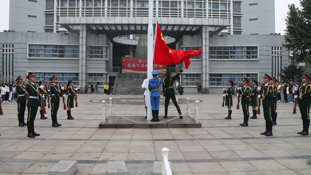早晨6:30,学院东西校区同时举行升国旗仪式,五星红旗冉冉升起,迎风飘扬,现场学生面向国旗肃立致敬。随后,秋季学期第四期“国旗下思政公开课”开讲,经济管理系学生代表倾情朗诵《我的祖国》、共同唱响《中国》,为伟大祖国庆生。