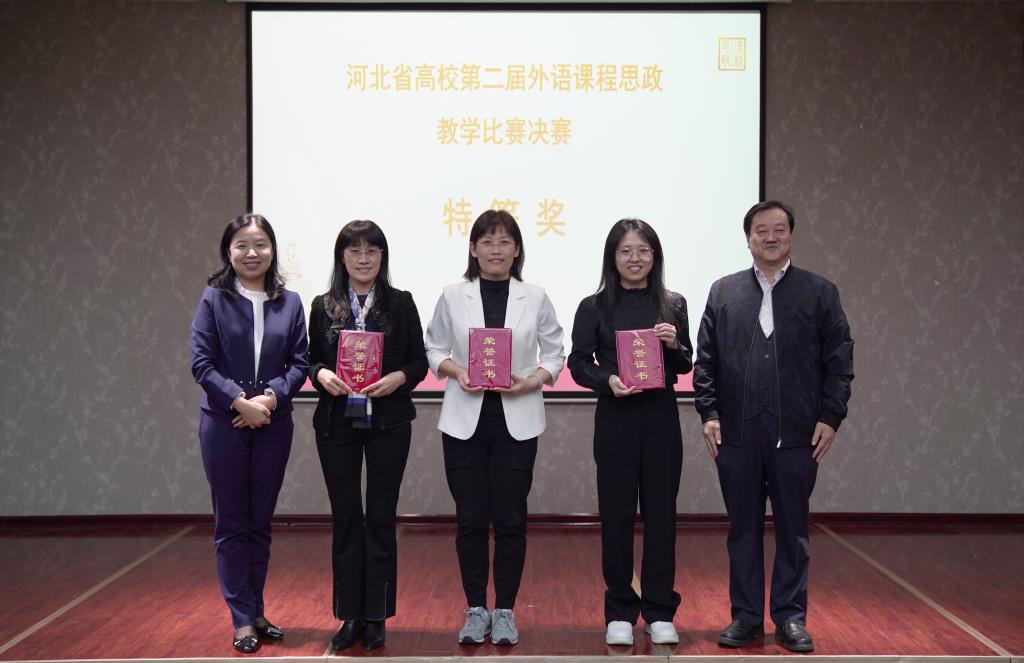 10月16日,2021年河北省高校第二届外语课程思政教学比赛决赛在河北师范大学举行。基础课部赵俊霞、李彦民、周燕、黄艳、常耀霞团队代表best365参赛,荣获高职高专组特等奖,并获得参加2021年全国高等学校外语课程思政优秀教学案例征集与交流活动国赛的资格。