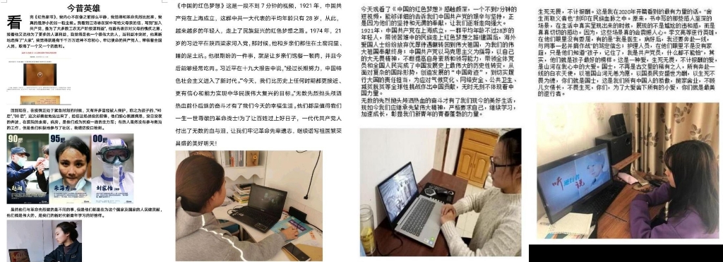 在此期间,学生纷纷登录中华英烈网参与清明祭扫活动,学习英雄先烈们的英勇事迹,为先烈献花、留言;开展爱国主义主题班会和征文活动,立报国之志,践爱国之行;通过中华经典朗诵与清明节知识问答活动,在缅怀先辈的情怀中认知传统、尊重传统、继承传统;线上参与“最令你感动的英烈事迹”“最想对逆行者说的一句话”话题互动,用英烈精神汇聚抗疫力量,把对革命先烈的悼念、对抗疫逆行者的怀念化作向上向善的实际行动。