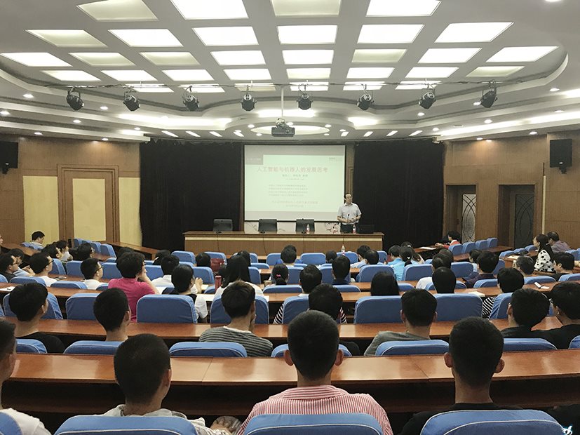 5月25日,河北工业大学机械工程学院院长、机器人及自动化研究所所长、中国自动化学会建筑机器人专业委员会副主任、中国人工智能学会智能制造专业委员会常委、博士生导师李铁军教授应我院邀请,在图书馆报告厅作了题为“人工智能及机器人发展思考”的学术报告。机电、电气、建工、汽车等系170余位老师和学生到场聆听。