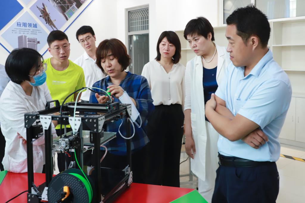 机电工程系主任高英敏首先介绍了学院及机电工程系的发展状况。随后带领一行人员参观了机电工程系增材制造技术中心、无人机应用技术中心等实验实训场所,并对3D打印技术在生产领域中的应用、无人机专业的培养方向及就业区域就业单位、智能制造与区域企业合作等进行了深入了解。参观后,郝丽双主任一行对机电工程系先进的办学理念、高端的实践教学仪器设备、深度的校企合作、专业的科研平台等啧啧称赞。