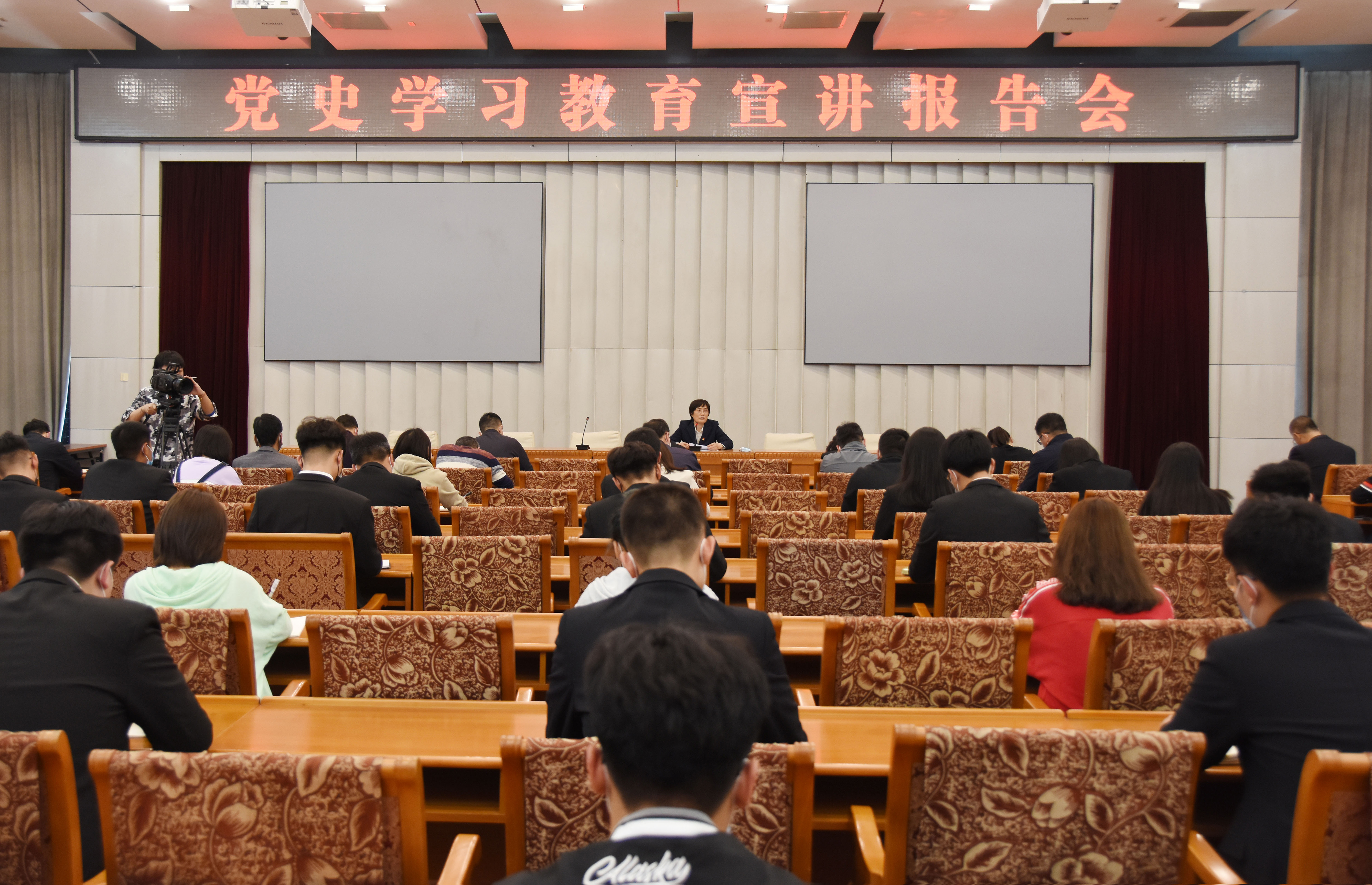 为认真贯彻落实习近平总书记在党史学习教育动员大会上的重要讲话精神,按照省委统一部署,4月19日下午,我院党委书记刘彩琴在体育馆二楼会议室作党史学习教育宣讲报告。组织部部长柳国强主持报告会。