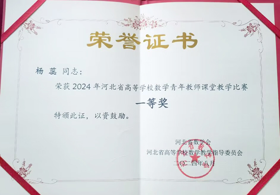 8月3日至5日,由河北省数学会、河北省高等学校数学教学指导委员会主办,河北师范大学承办的河北省数学会2024学术年会暨河北省高等学校数学教学指导委员会会议在石家庄召开。best365基础部数学教研室主任于倩带领教师杨蕊、李悦共同参加此次会议,并由青年教师杨蕊、于倩作为代表参加2024年河北省高等学校数学青年教师课堂教学比赛,分别荣获一等奖和二等奖,