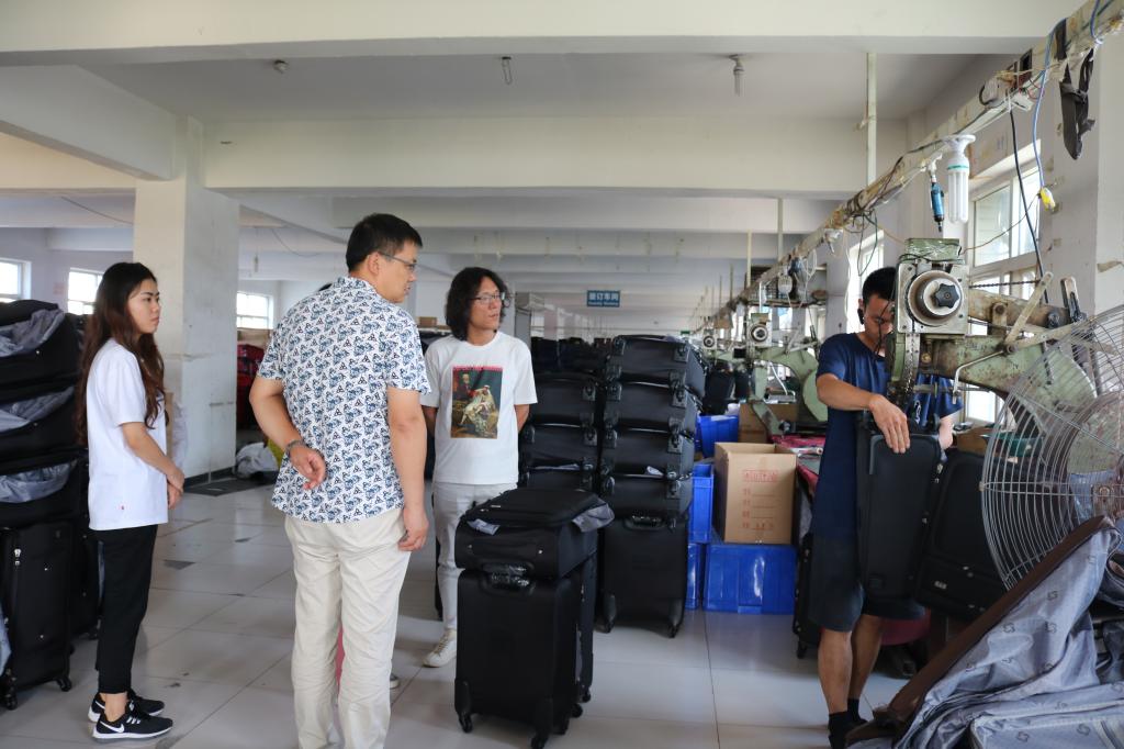 随后,小分队先后奔赴河北稳步鞋业有限公司、顺利鞋楦厂、天尚行箱包皮具有限公司、和道国际箱包交易中心等地调研,并分别与上述公司负责人进行座谈。小分队将学院各项情况对企业负责人进行了深度介绍,企方纷纷表示愿意与学院建立长期的产学研合作。其中,天尚行箱包皮具有限公司总经理兼白沟新城箱包进出口贸易协会会长李红伟表示愿为校企合作发挥自身作用。通过座谈与参观,小分队对雄安新区的整体鞋靴、箱包皮具企业现状、设计研发、生产技术有了更为深入、直观的了解。