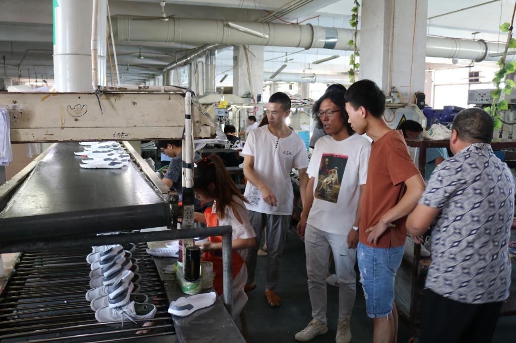 8月19日,小分队师生在系党总支副书记辛东升的带领下,奔赴雄安新区安新县中低档鞋靴产业聚集地三台镇进行人才需求调研。小分队师生首先来到系校企合作企业——金宏康鞋业有限公司,围绕雄安新区区域优势、当前鞋企发展瓶颈、未来鞋企发展趋势与该企业负责人吴伟康进行了深入的座谈。吴伟康总经理结合公司品牌设计理念、设计方案、样品制作等方面与师生们深入探讨,并结合自身人才需求提出才培养模式的中肯建议。小分队现场就如何进行转型升级提供了可借鉴的行业经验。座谈结束后,在相关负责人的带领下小分队到公司生产车间现场参观。