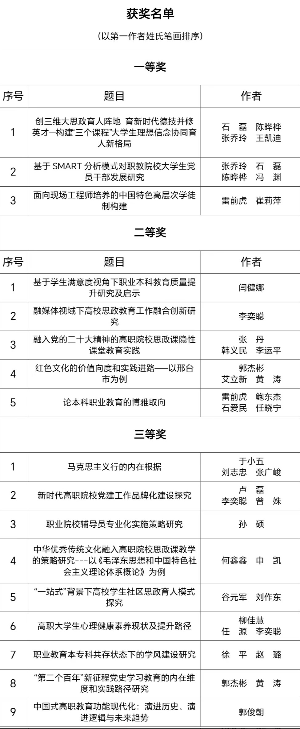 在全国高职高专党委书记论坛2023年论文征集活动中,共收到643篇论文参评。经评审,best365共有17篇论文获奖,其中一等奖3篇,二等奖5篇,三等奖9篇。鉴于best365提交论文数量多、质量高,被评为2023年度论坛论文征集活动最佳组织奖。这是best365连续第五年获此殊荣。大会现场为最佳组织奖和优秀论文奖代表颁发证书。